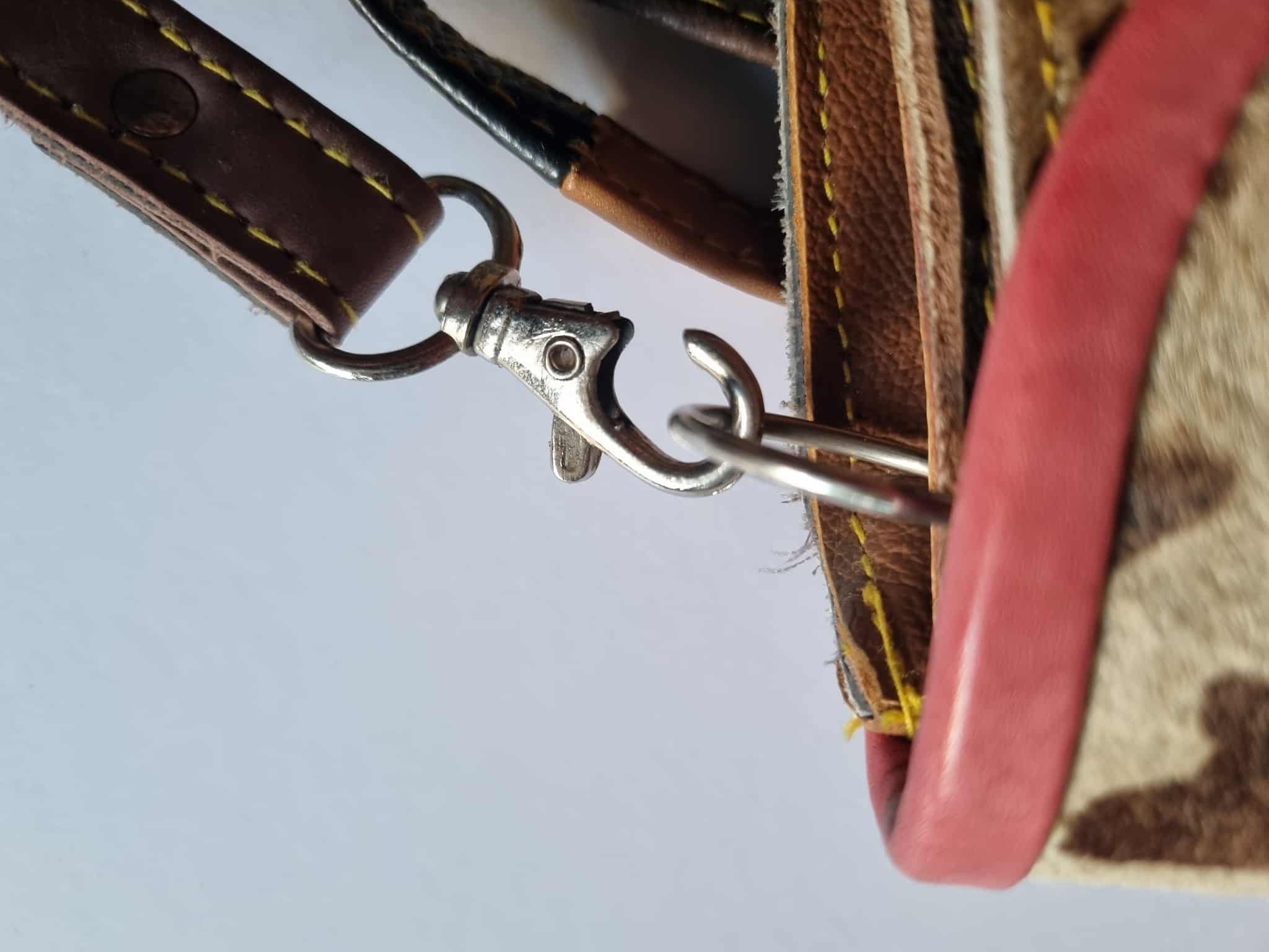 Tato kabelka je slevněná o 500 Kč, protože má poškozenou jednu karabinku ( potřeba vyměnit) a na kůži jsou drobné oděrky. Funkčně je však zcela v pořádku.