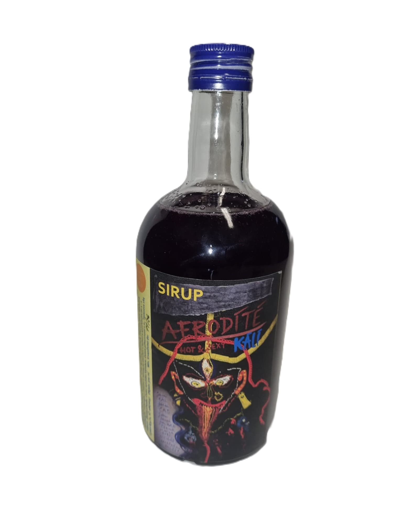 Sirupu Kálí, stejně jako 90% čokoládě s názvem Afrodíté Kálí, vévodí chuť afrodiziakálního koření, zatímco Klitoria ternatská, známá také jako Modrá matcha, propůjčuje sirupu nezaměnitelně tyrkysově modrou barvu. Bohužel, po přidání kyseliny citronové coby konzervantu, se tato modř změní spíše na temně fialovou barvu. (Stejně, jako když si u nás v kavárně dáte čaj z Modré matchi a po vhožení plátku citronu nápoj také zfialoví.) I tak je však tento sytě fialový nápoj vhodný jako základ pro míchané alko i nealko nápoje a díky ohřívacímu koření je perfektní jako horký nápoj v zimě.
