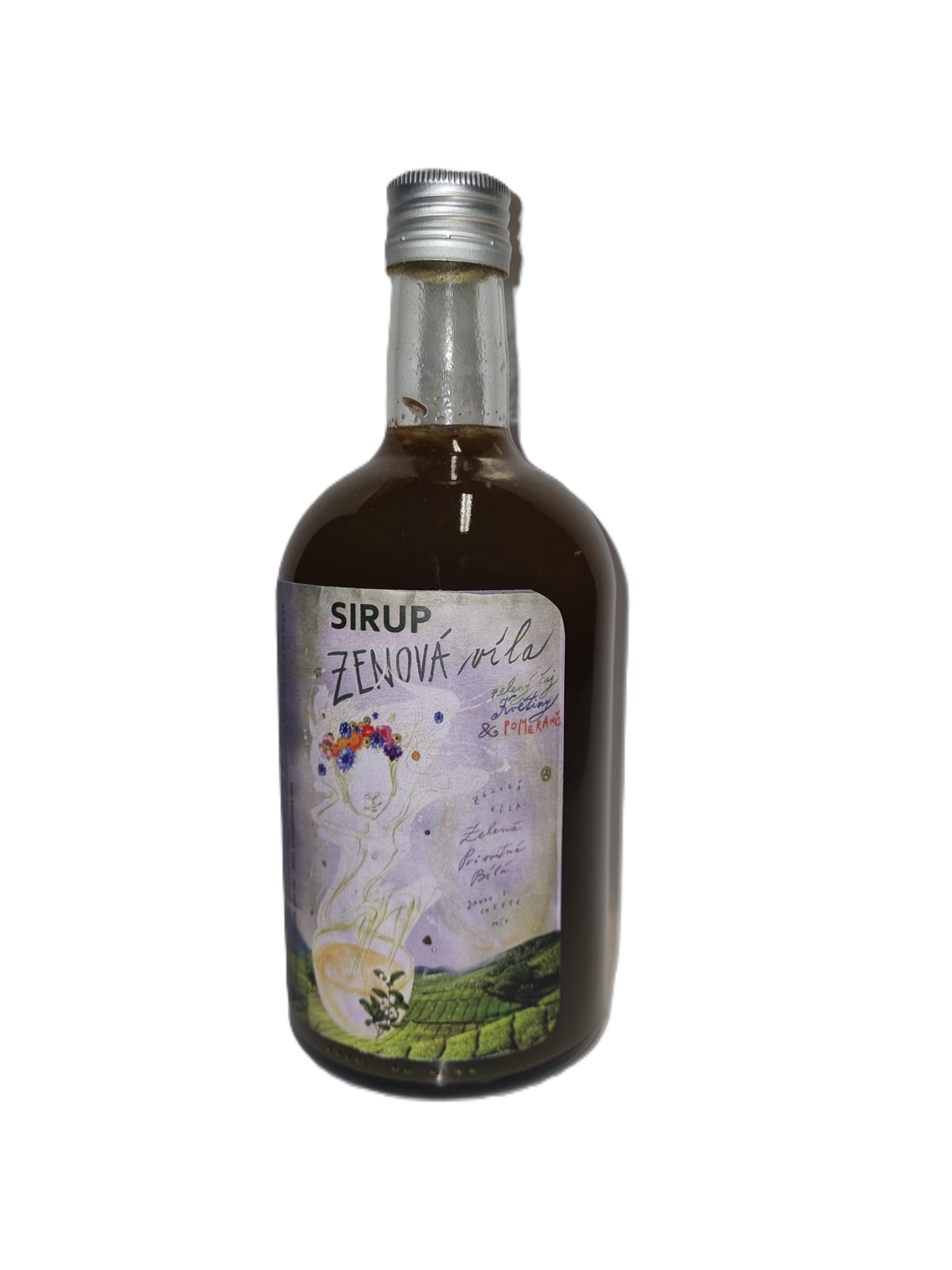 Zenová víla je koncert chutí, vzniklých vyvařením všech 16 bylin, jedlých květin, sušeného ovoce a zeleniny, které obsahuje posyp stejnojmenné čokolády, spolu s chutí bio pomerančové šťávy a kůry. O povzbuzující účinky sirupu se postará práškový čaj matcha. Je skvělý v zimě, zalitý horkou vodou, stejně jako v létě studenými bublinkami.