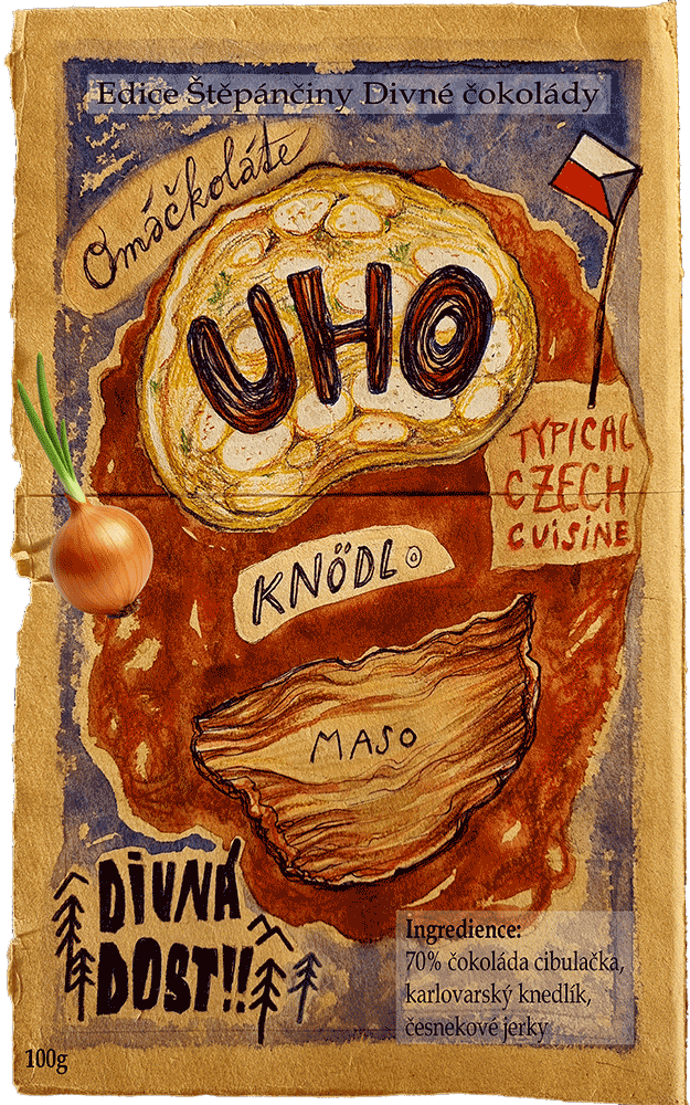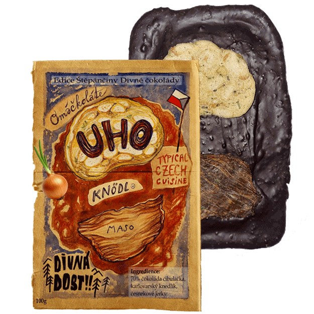 První omáčkoláda se skutečným vepřovým masem na česneku a karlovarským knedlíkem, inspirovaná tradiční českou kuchyní. Vyrobeno ve spolupráci s lokální firmou z Moravského krasu „DOBRÝ DOST!!“, která vyrábí kvalitní, různě ochucené jerky.